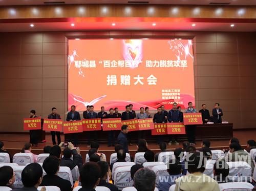 中華龍都網訊(周口報業(yè)全媒體記者 徐松 文/圖)4月13日,鄲城縣召開“百企幫百村”助力脫貧攻堅捐贈大會,全縣129家企業(yè)反哺社會助力脫貧攻堅,現場捐贈近1300萬元。鄲城縣四個班子領導、部分縣處級領導干部、縣慈善會會長、縣扶貧協會會長、縣直各單位和鄉(xiāng)鎮(zhèn)負責人等參加捐贈大會??h委書記羅文閣發(fā)表講話,縣長李全林主持會議。