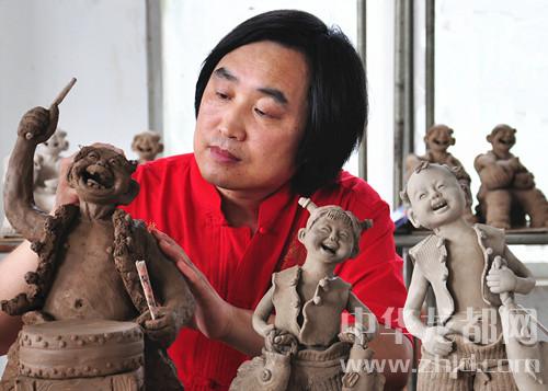 從發(fā)現(xiàn)泥人碰撞易碎、遇水易損,張振福便歷盡艱辛、反復(fù)嘗試,終于像燒磚頭一樣,把泥塑燒成了陶塑;然而,從土黃色變成了磚瓦色,陶塑的顏色仍然單一、呆板,不能展示出泥塑的深層次神韻。于是,張振福大膽地將泥塑與鈞瓷結(jié)合起來,創(chuàng)造了一個不一樣的藝術(shù)世界。
