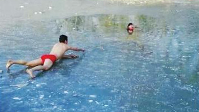 2018年1月1日,新年的第一天。甘肅金昌市龍泉公園,一名6歲男孩不慎墜入湖中冰窟,現(xiàn)場(chǎng)多名熱心市民與及時(shí)趕到的民警合力展開(kāi)一場(chǎng)生死大營(yíng)救,終將男孩救出。讓人感動(dòng)的是,一位“紅褲頭”小哥與同伴第一個(gè)沖上冰面,“紅褲頭”匍匐在冰面上,奮力伸手把編好的藤條扔向水中掙扎的男孩。男孩獲救后,“紅褲頭”與同伴卻悄悄離開(kāi)……