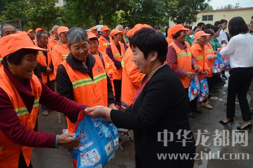 當(dāng)天,西華縣萬(wàn)果園商貿(mào)有限公司自發(fā)組織來(lái)到該縣城管局,向一線城管人員表達(dá)敬意,并向他們捐贈(zèng)價(jià)值2萬(wàn)余元的毛巾、洗衣粉等愛(ài)心物資。