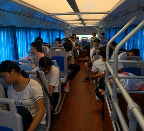 周口市文昌中學考點地處較為偏僻,考點周邊公共服務設施較少,市公交總公司投入兩輛雙層空調公交車作為公交空調休息車,從早上8時開放至下午5時,專供考生及其家長候考使用。為了給考生加油打氣,兩輛雙層公交都拉上高考祝福標語“天王蓋地虎全考985,寶塔鎮(zhèn)河妖全上211”、“今年考生特別牛,全部都上雙一流”。兩個詼諧幽默的標語,給考場外帶來一些輕松氣氛,緩解考生和家長的緊張情緒,也給考場外增添了樂趣。