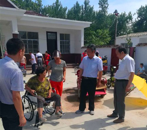 中華龍都網(wǎng)訊(周口報業(yè)全媒體記者 張猛 通訊員 侯衛(wèi)莊)6月29日上午,西華縣政協(xié)主席郭峰、副主席唐金華帶領(lǐng)經(jīng)濟界、工商聯(lián)界委員和殘聯(lián)及愛心商家,到西華營鎮(zhèn)鋪李村慰問貧困群眾、捐贈愛心物資。