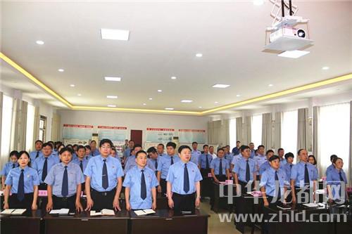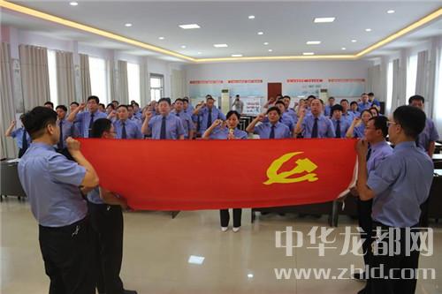 最后,全體干警面對黨旗進行了莊嚴(yán)的宣誓,鏗鏘的誓言堅定了干警們永遠(yuǎn)跟黨走的信念!
