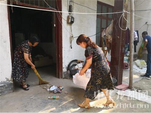 在貧困戶張敬宇家中,縣委宣傳部副部長葛澤洲安排分工協(xié)作?!芭鲀?nèi),打掃屋內(nèi)衛(wèi)生,男主外,收拾庭院,開工?!苯又?,大家拿起掃把、抹布等工具,有的打掃院子,有的擦桌子,有的整理內(nèi)務(wù),貧困戶家中呈現(xiàn)出一派繁忙景象。