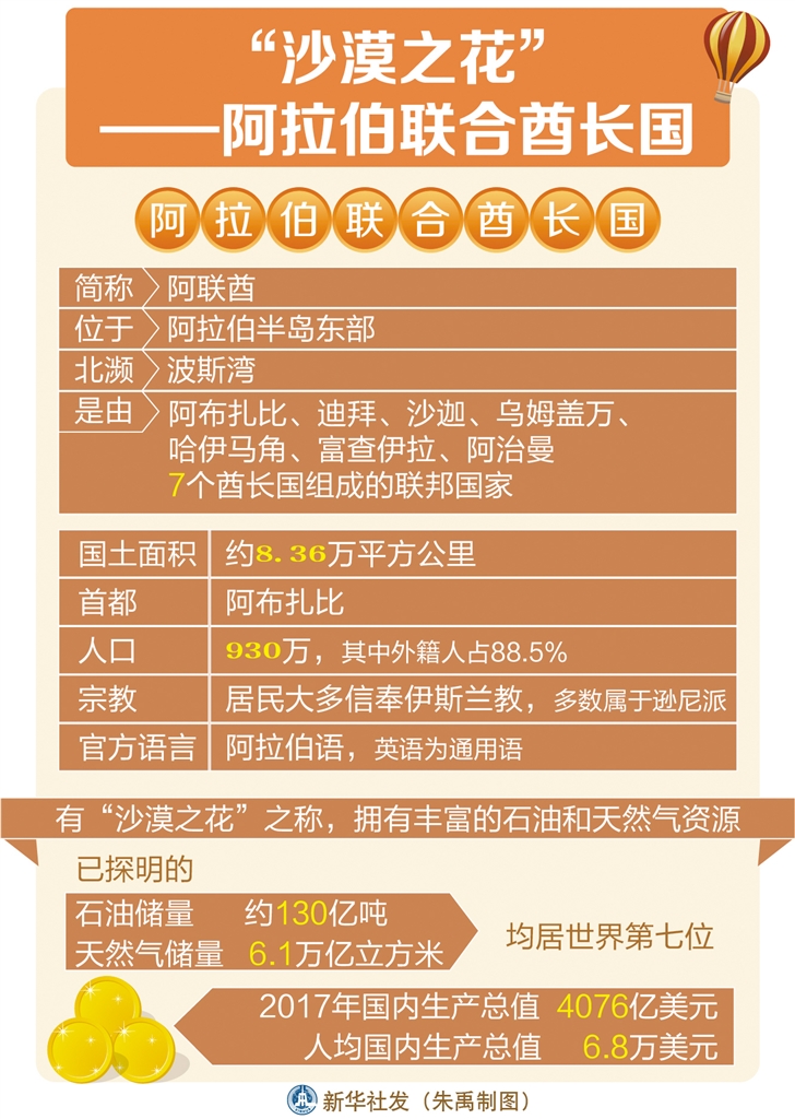 據(jù)統(tǒng)計(jì),截至2017年年底,中國(guó)對(duì)阿聯(lián)酋各類投資存量90.9億美元,2017年對(duì)阿聯(lián)酋直接投資流量6.2億美元。中國(guó)是阿聯(lián)酋最大的貿(mào)易伙伴,阿聯(lián)酋是中國(guó)在阿拉伯國(guó)家中第二大貿(mào)易伙伴和第一大出口市場(chǎng)。