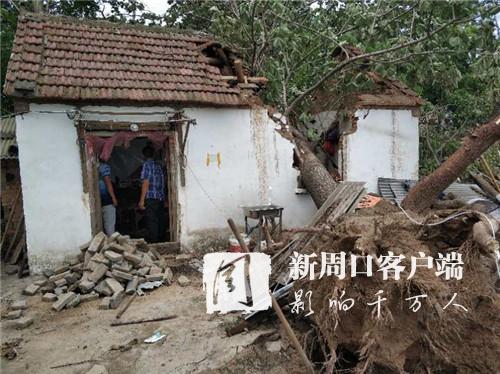 7月26日下午4時(shí),下起瓢潑大雨,刮起了五六級(jí)大風(fēng)。而代體叢老人的兩間瓦房猛然間被50公分粗的大樹砸塌,大樹倒塌位置正好是過去代體叢老倆口居住的床頭。