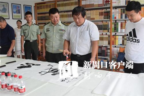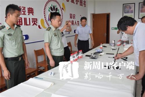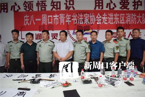 為進(jìn)一步充實(shí)官兵的警營文化生活,喜迎建軍91周年,7月30日下午,周口市青年書法家協(xié)會(huì)會(huì)長李為等人走進(jìn)東新區(qū)消防大隊(duì),現(xiàn)場(chǎng)揮毫潑墨,用飽蘸感情的書法作品向消防官兵表達(dá)了節(jié)日祝福。