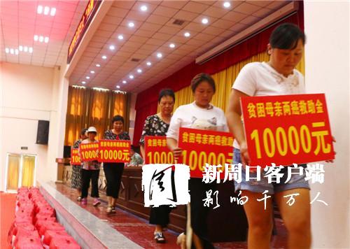 來自唐集鄉(xiāng)王莊村的吳鳳芝拿到一萬元救助金后激動不已,連稱:“謝謝黨委、政府,謝謝婦聯(lián)對我們的關愛……” 據(jù)了解,自河南省婦聯(lián)實施“兩癌”貧困婦女救助項目以來, 鹿邑縣婦聯(lián)積極組織,通過鄉(xiāng)鎮(zhèn)婦聯(lián)對全縣26個鄉(xiāng)鎮(zhèn)的貧困“兩癌”患者進行摸底和檔案審核,并通過中國婦女網(wǎng)為符合條件的“兩癌”貧困婦女申請救助。截止目前,鹿邑縣婦聯(lián)共向上申請救助金23萬元,救助23名貧困“兩癌”患者,今天得到救助的6名貧困母親每人將獲得1萬元的資金救助。