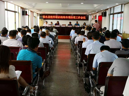 8月16日上午,商水縣校外培訓機構(gòu)專項治理工作推進會在教體局四樓會議室召開。縣教體、民政、人社、工商、公安、城管、食藥監(jiān)、消防等8個單位相關(guān)負責人,各鄉(xiāng)鎮(zhèn)(場、辦)分管教育副職,縣教體局各股室負責人,各中心校長、縣直學校(幼兒園)校長參加會議。會議由縣教體局負責人鄭春來主持。
