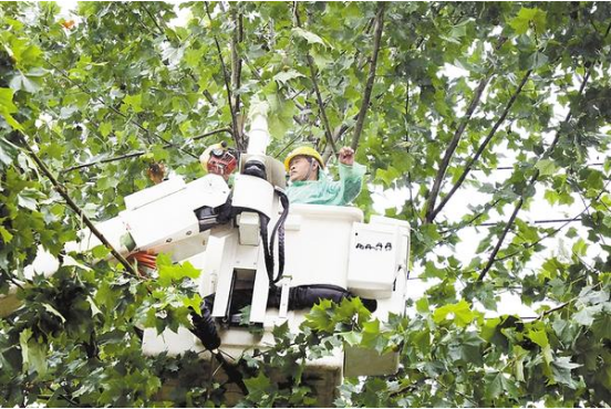 上圖 電力搶修人員在芙蓉路維修線(xiàn)路。記者 竇娜 攝