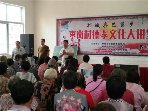 8月17日至19日,鄲城縣巴集鄉(xiāng)棗崗文化活動中心舉行了為期三天的徳孝文化大講堂,本次活動由縣質監(jiān)局、縣國學會、棗崗行政村黨支部村委會主辦。旨在進一步樹立社會新風,建立良好的家風家規(guī),深入弘揚和傳承中華徳孝傳統(tǒng)文化,積極培育和踐行社會主義核心價值觀,提高公民素質和社會文明程度,形成“以德修身、以身孝親”的良好風尚。
