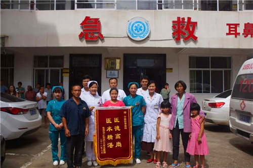 8月20日上午,伴著歡快的嗩吶聲,鄲城縣張完鄉(xiāng)的王先生和妻子、女兒一起懷著激動(dòng)的心情,帶著一面印有“醫(yī)德高尚 醫(yī)術(shù)精湛”的錦旗來到鄲城縣中醫(yī)院,把錦旗送到該院急診科醫(yī)護(hù)人員手中,算是了結(jié)了一樁讓他和家人牽掛了兩年的“心事”。