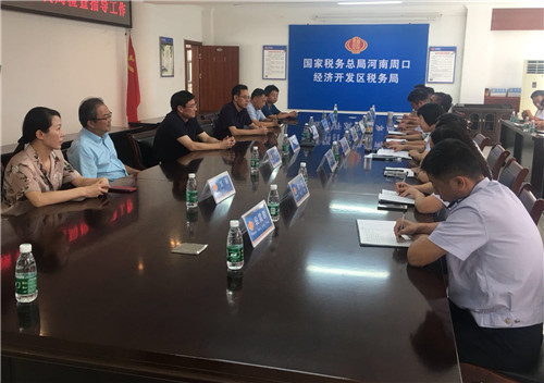 9月4日,開(kāi)發(fā)區(qū)黨委書記田林、管委主任王文峰、管委會(huì)副主任支利民帶領(lǐng)有關(guān)部門負(fù)責(zé)同志,到開(kāi)發(fā)區(qū)稅務(wù)局調(diào)研指導(dǎo)。