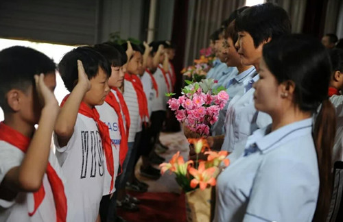 "老師,您辛苦了!"9月6日,商水縣北極星學校舉行了慶祝全國第34個教師節(jié)暨表彰大會。該校少先隊員集體給所有老師送上了鮮花,并獻上歌曲《每當我走過老師的窗前》。