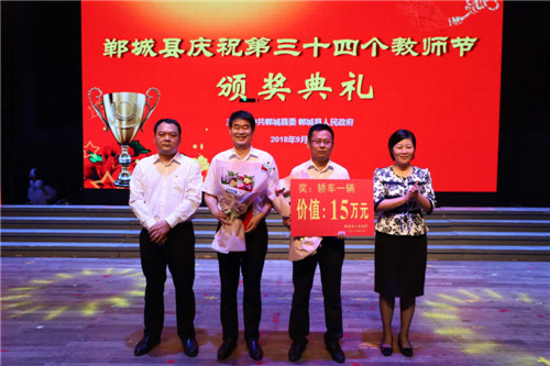 9月10日,鄲城縣舉行慶祝第34個(gè)教師節(jié)頒獎(jiǎng)典禮,縣委書記羅文閣出席典禮并講話、縣長(zhǎng)李全林致辭,縣領(lǐng)導(dǎo)姜永來、侯磊、吳青鋒、王智華、呂振龍、馬超、崔衛(wèi)華等出席頒獎(jiǎng)典禮。