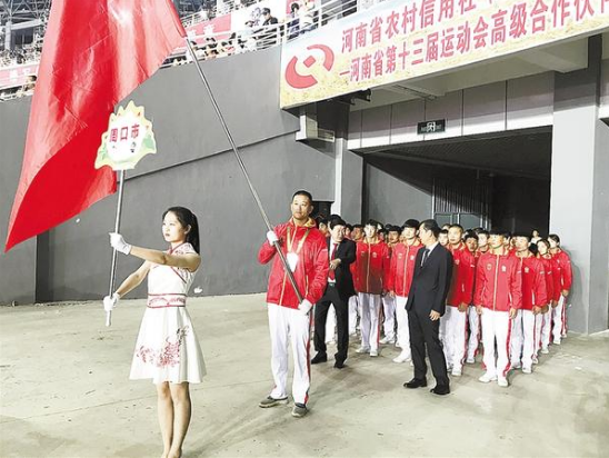 昨日20時,河南省第十三屆運動會開幕式在市體育中心體育場拉開帷幕。在開幕式現(xiàn)場,武警戰(zhàn)士高舉國旗邁著堅實整齊的步伐走在第一方陣,當武警戰(zhàn)士走過主席臺后,各代表團陸續(xù)入場。作為東道主,周口市代表團最后一個步入體育場,旗手是全國跆拳道冠軍樊海青。