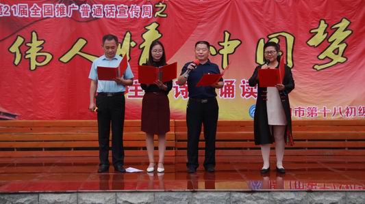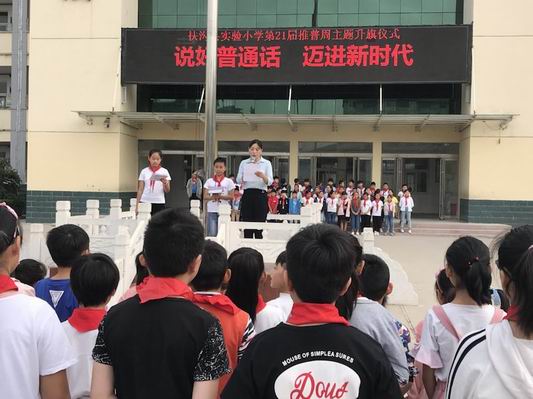周口十八中、鄲城第二實(shí)驗(yàn)中學(xué)舉辦了推普周誦讀比賽,在比賽中學(xué)校倡議全體師生立即行動(dòng)起來,從自身做起,從現(xiàn)在做起,人人講普通話,時(shí)時(shí)講普通話,處處講普通話。扶溝縣實(shí)驗(yàn)小學(xué)舉行了推普周主題升旗儀式,向?qū)W生介紹了推廣普通話和使用規(guī)范字的意義。據(jù)了解,周口市各縣區(qū)都開展了相應(yīng)的主題班會(huì)、書法比賽、街頭宣傳等推普周主題活動(dòng)。