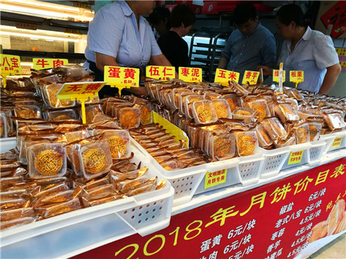 “給我拿兩斤青紅絲酥皮和五仁的?!币晃?0出頭的女士邊付錢(qián)邊說(shuō),小時(shí)候,過(guò)中秋節(jié),一家人圍坐一起吃這種半斤重的老式月餅,一個(gè)月餅分八塊,一人一塊,現(xiàn)在回想起來(lái),“真甜”!