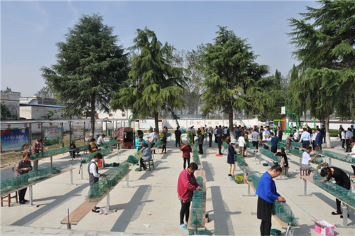 今年以來,郝崗鎮(zhèn)積極引進漁網(wǎng)編織項目,在全鎮(zhèn)集中開展2次漁網(wǎng)編織技術培訓會,免費為貧困戶發(fā)放300多個編織架和編織工具,讓貧困留守婦女不出家門就能有事可做、有錢可掙。會議開始前,與會人員到郝崗鎮(zhèn)程莊村實地觀摩漁網(wǎng)編織現(xiàn)場,駐 村第一書記陳玉東介紹了漁網(wǎng)編織項目的進展情況、貧困戶受益情況等。