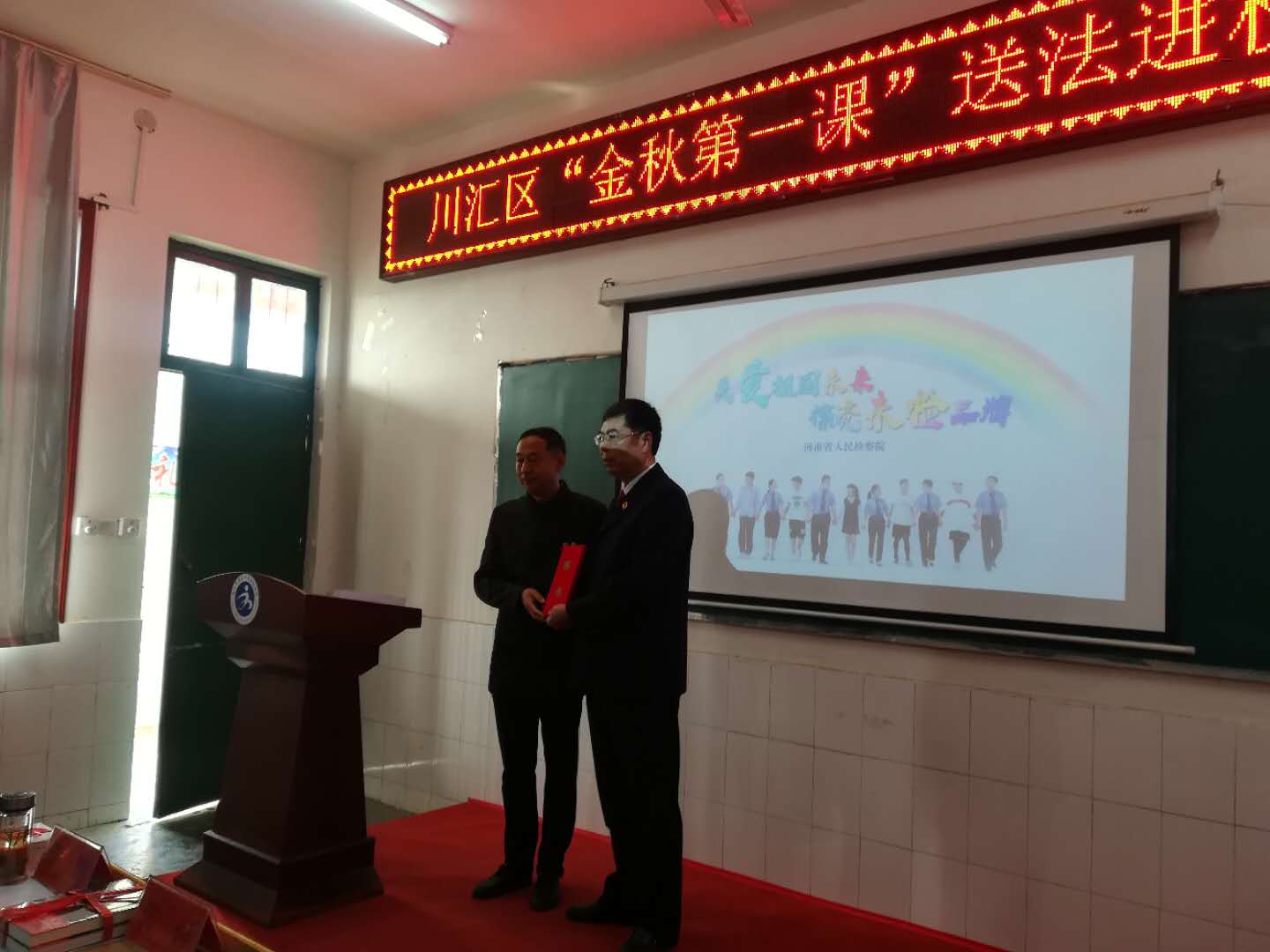 活動(dòng)中,川匯區(qū)人民檢察院黨組書(shū)記、檢察長(zhǎng)郭煜被聘為周口市第23中法制副校長(zhǎng)。