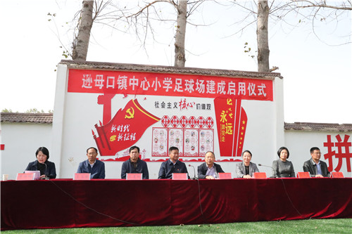 啟用儀式上,該縣遜母口鎮(zhèn)中心小學的學生們愉快地表演了足球操,少先隊員分別向領(lǐng)導和嘉賓佩戴紅領(lǐng)巾表達感恩之情。河南省第十三屆人大代表張華女士代表足球場捐建單位講話。張華說,當前,隨著脫貧攻堅深入開展,家鄉(xiāng)的各項事業(yè)蓬勃發(fā)展。作為遜母口鎮(zhèn)的一員,看到家鄉(xiāng)這些年翻天覆地的變化,感到特別喜悅。作為一名省人大代表,為助力家鄉(xiāng)脫貧攻堅,同時落實“脫貧攻堅人大代表在行動”號召,便決定投資50萬元為遜母口鎮(zhèn)中心小學建立一個高標準的踢足場,滿足孩子們踢足球的愿望。