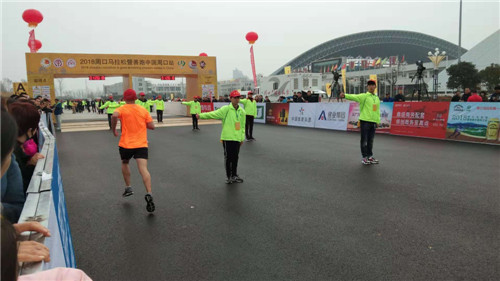11月18日,在2018周口馬拉松暨善跑中國周口站現(xiàn)場,一個個身穿統(tǒng)一服裝的志愿者活躍在賽道之上,他們或給選手舉路線指示牌,或伸出大拇指給路過選手一個大大的“贊”,成為賽場內(nèi)外一道靚麗的風(fēng)景。