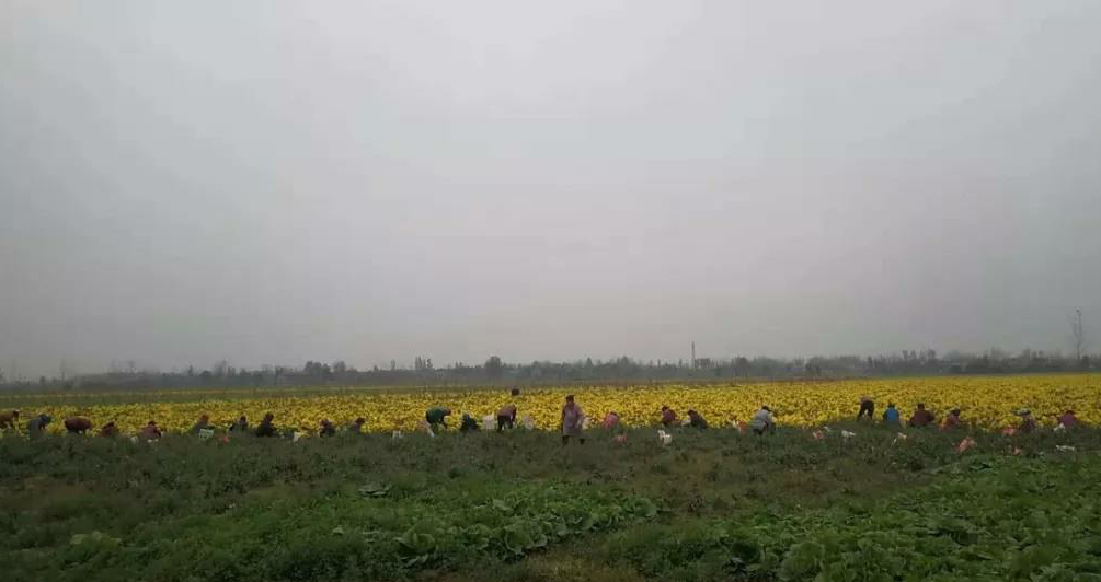 自10月25日進入收獲季節(jié),先后對這片金絲皇菊進行了三次采摘,由于對花形大小有要求,得挑著采,每人每天按40元計算報酬。這次是末茬,需要大小一遍凈,以每斤0.3元結算酬勞。