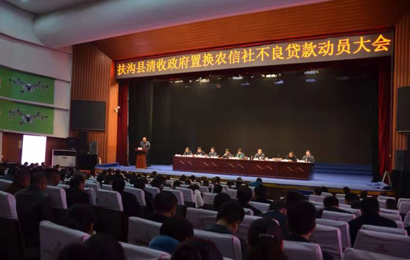 11月21日,扶溝縣召開政府置換農(nóng)信社不良貸款清收工作動員會。會議貫徹落實省、市有關(guān)部署,動員全縣上下統(tǒng)一思想,提高認(rèn)識,細化措施,夯實責(zé)任,推動政府置換農(nóng)信社不良貸款清收工作深入開展、取得實效。張穎波、張峰、王偉、常青、王霄靈、陳建華、李建設(shè)等縣領(lǐng)導(dǎo)出席會議??h委副書記、政法委書記張峰主持會議。