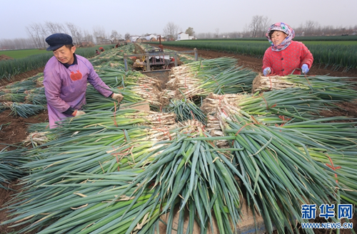 近年來,淮陽縣齊老鄉(xiāng)袁樓行政村大力發(fā)展特色種植,以“合作社+農(nóng)戶”的形式種植大蔥4000余畝,每畝增收14000余元,帶動村里貧困人口35戶124人土地入股和就業(yè),其中已有25戶脫貧。通過發(fā)展種植大蔥,該村從以前人均不足2000元的貧困村變成如今人均達(dá)到1萬多元的小康村。新華網(wǎng)發(fā)(楊正華 攝)