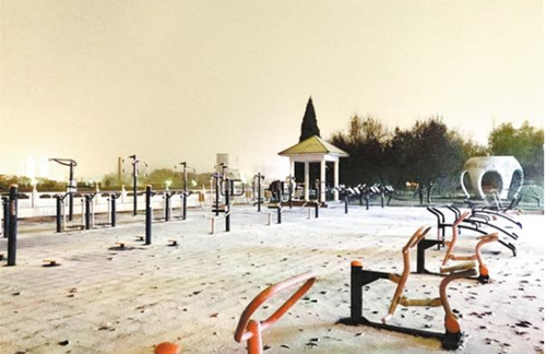 2018年冬天的第一場(chǎng)大雪,把周口市中心城區(qū)沙潁河風(fēng)景區(qū)裝扮得清新雅致,別有一番風(fēng)味?;ú?、綠植、雕塑、亭臺(tái)、環(huán)廊、步道乃至健身器材,在雪的映襯下,都顯得通透而有靈性,讓人欣喜非常。
