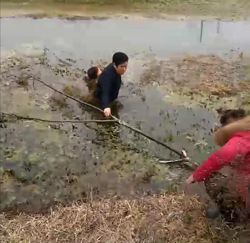當(dāng)日上午12時許,在走村入戶返回住處途中,突然聽到不遠(yuǎn)處的黑河邊有女子大聲在喊:“快點(diǎn)來河里救人啊!有人跳進(jìn)河里啦!”正好路過此處的倪永勝和王懷銀聽到喊叫聲后,毫不猶豫地直奔出事地點(diǎn)。50多歲的王懷銀來不及脫下衣服和掏出兜里的手機(jī),一下子跳進(jìn)了冰冷的河水中,倪永勝迅速組織村里趕來的群眾進(jìn)行協(xié)助施救。此時,只見王懷銀全身衣服都濕透,在冰冷的河水中,王懷銀一手拄著一根樹枝防止下滑,一手使勁拉著跳河女子的手,在倪永勝和村民們的幫助下,將輕生女子成功救出。后經(jīng)醫(yī)生檢查,由于施救及時,該女子并無大礙。