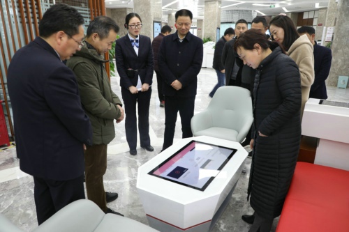 調(diào)研組一行首先來到商水農(nóng)商銀行陽城支行查看“普惠+數(shù)字”銀行建設(shè)情況。陽城支行行長簡要介紹該網(wǎng)點(diǎn)基本情況、服務(wù)理念后,引導(dǎo)調(diào)研組一行依次參觀了普惠授信服務(wù)區(qū)、數(shù)字智能服務(wù)區(qū)、電子銀行體驗(yàn)區(qū)、保管箱服務(wù)區(qū)、貴金屬服務(wù)區(qū)等特色功能區(qū),并詳細(xì)介紹了每個(gè)功能區(qū)的作用和特點(diǎn)。調(diào)研組一行現(xiàn)場體驗(yàn)了智能導(dǎo)覽臺 、客戶互動(dòng)桌等智能設(shè)備,對該網(wǎng)點(diǎn)定位準(zhǔn)確、理念前衛(wèi)、設(shè)備先進(jìn)、功能齊全、分區(qū)合理,為客戶提供全方位的金融服務(wù)表示贊賞。