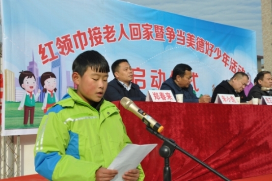 12月29日下午,在商水縣姚集鎮(zhèn)舉行的“紅領巾接老人回家暨爭當美德好少年”活動 啟動儀式上,姚集鎮(zhèn)盧廟小學六年級學生張吉慶用幼稚童音朗誦的《用愛接爺爺奶奶 回家》,感動了在場的來自各鄉(xiāng)鎮(zhèn)的數(shù)百名鄉(xiāng)村干部?!昂⒆又v的好,我們一定配合 鄉(xiāng)政府把獨居老人戶清零工作做好做實,讓老人們年年過暖冬?!睖f鄉(xiāng)中心校長戚 二中會后告訴記者。