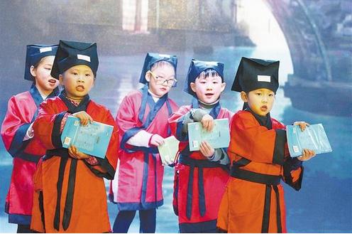 國(guó)學(xué)經(jīng)典是國(guó)家和民族的靈魂,凝聚著中華民族的智慧,展示著中華民族的精神。周口星源國(guó)際學(xué)校在教學(xué)過(guò)程中注重培養(yǎng)學(xué)生對(duì)國(guó)學(xué)經(jīng)典文化的興趣,讓學(xué)生感悟國(guó)學(xué)經(jīng)典的傳統(tǒng)文化魅力,形成人人自覺“誦經(jīng)典、悟經(jīng)典、行經(jīng)典”的良好氛圍,激發(fā)青少年繼承和發(fā)揚(yáng)優(yōu)秀民族文化的信心。圖為該校學(xué)生在元旦晚會(huì)上進(jìn)行國(guó)學(xué)表演。 記者 劉俊濤 攝