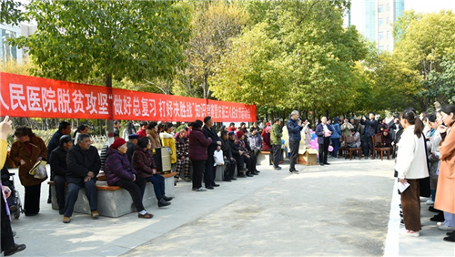 運動會共設(shè)四個項目:你演我猜、踩氣球、搶凳子和蒙眼擊鼓。講究默契的你演我猜,團隊協(xié)作的踩氣球,笑料百出的蒙眼擊鼓,讓整個賽場充滿著歡聲笑語。激烈的比賽也引來了患者及家屬的圍觀,他們也被這歡樂的氣氛感染,臉上綻放出了笑容。在競爭激烈的搶凳子比賽中,主持人加入了知識問答環(huán)節(jié),沒搶到凳子的要回答主持人提出的扶貧措施問題,隨著一個個參賽者被淘汰,醫(yī)院的各項扶貧措施也給圍觀者們留下了深刻的印象。