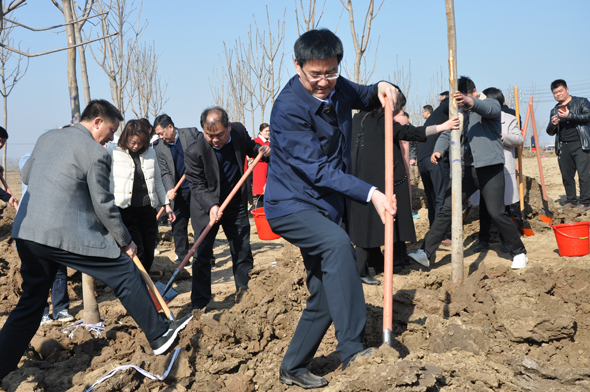開工儀式結(jié)束后,與會領(lǐng)導(dǎo)在森林公園項目所在地參加植樹造林活動,為森林公園植上第一片新綠。