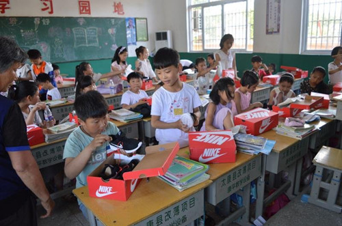 說干就干,回到公司,他便安排專人負(fù)責(zé),為母校的260多名師生每人購買了一雙出廠價200余元,總價值5萬余元而市場價則需10多萬元的國際知名品牌—耐克牌運(yùn)動鞋,為學(xué)校落實(shí)陽光體育運(yùn)動,強(qiáng)健孩子的體魄打下了良好的物質(zhì)基礎(chǔ),受到當(dāng)?shù)馗扇旱囊恢潞迷u。