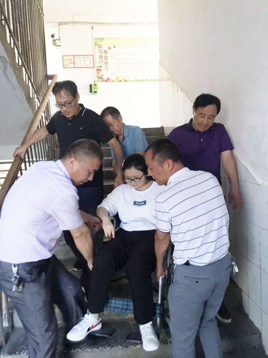 “考慮到她行動(dòng)不便,我們適當(dāng)?shù)卣{(diào)整了桌子之間的距離。”羅明中表示,兩天來(lái),晉淼在實(shí)驗(yàn)中學(xué)考點(diǎn)服務(wù)工作人員的幫助下,從一樓抬進(jìn)三樓考場(chǎng)。每場(chǎng)考場(chǎng)結(jié)束后,考點(diǎn)工作人員又把她從三樓抬下來(lái),推到家長(zhǎng)身邊。