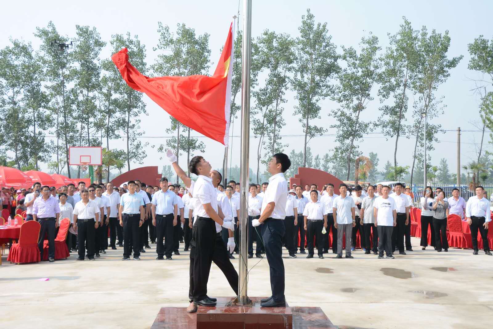 活動在莊嚴的升國旗儀式中拉開帷幕。由紀莊黨支部護旗手昂首闊步,迎著朝陽、護著國旗走向升旗臺,在場全體黨員、干部、群眾注視下,伴隨著震撼人心、氣勢磅礴的國歌完成了升旗儀式。