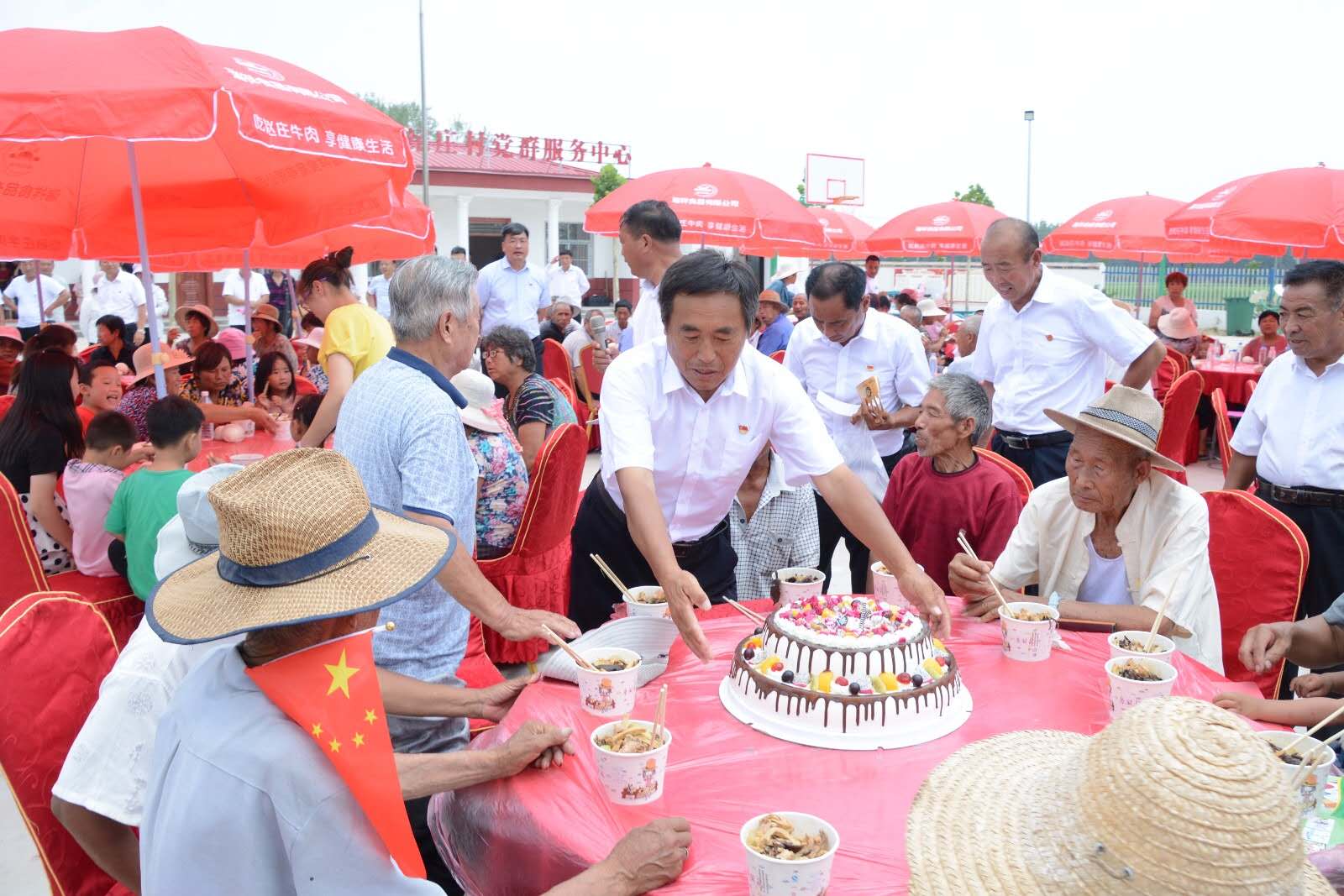 文藝演出結束后,參會黨員群眾歡聚一堂,共進午餐。紀莊村黨支部書記攜全體黨員干部共同為當月過生日的老黨員史海汕同志送上生日蛋糕,并一起聆聽老黨員的心路歷程,史海汕同志感慨地表述:“我在紀莊村生活了78年,這是我過的最好的一次生日,通過匯演我看到了鎮(zhèn)全體黨員、干部群眾們的愛國、愛黨、愛崗情懷,雖然我老了,可我的初心依舊,我愿為中國共產黨奮斗終身,為我們紅花集鎮(zhèn)鄉(xiāng)村振興添磚加瓦。”