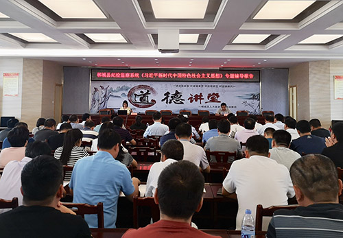 為進(jìn)一步推動(dòng)鄲城縣紀(jì)檢監(jiān)察干部深入學(xué)習(xí)貫徹黨的十九大精神,自覺(jué)用“習(xí)近平新時(shí)代中國(guó)特色社會(huì)主義思想”武裝頭腦、指導(dǎo)實(shí)踐、推動(dòng)工作,按照全縣紀(jì)檢監(jiān)察系統(tǒng)“鑄鐵軍、塑形象、再出發(fā)”活動(dòng)計(jì)劃安排,6月28日,鄲城縣紀(jì)委邀請(qǐng)縣委黨校教員鄭紅霞為全縣紀(jì)檢監(jiān)察干部做了一場(chǎng)“習(xí)近平新時(shí)代中國(guó)特色社會(huì)主義思想”專題輔導(dǎo)報(bào)告。