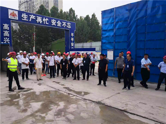 觀摩團第二站來到鄲城縣施工現場、地產項目人文景觀打造等處觀摩學習。觀摩團一行逐一參觀了售樓中心及周邊人文景觀打造項目和現場安全文明施工揚塵治理先進做法,每到一處都讓觀摩團震撼。