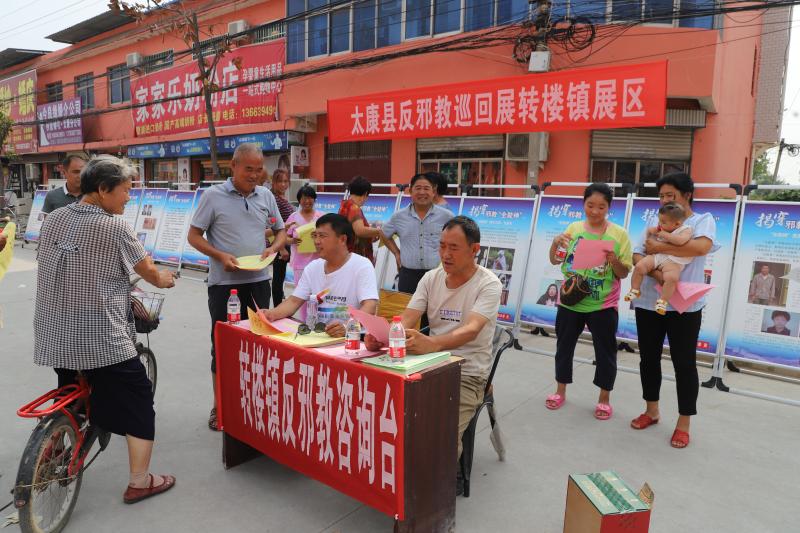 7月16日,太康縣反邪教巡回展在轉(zhuǎn)樓鎮(zhèn)開展反邪教宣傳活動。當(dāng)日,轉(zhuǎn)樓鎮(zhèn)政府組織鎮(zhèn)綜治中心、派出所、司法所、中心校等單位,在轉(zhuǎn)樓大街布置展板、咨詢臺,接受群眾咨詢1000余人次,發(fā)放宣傳頁1000多份。 記者 馬治衛(wèi) 通訊員 徐偉 攝