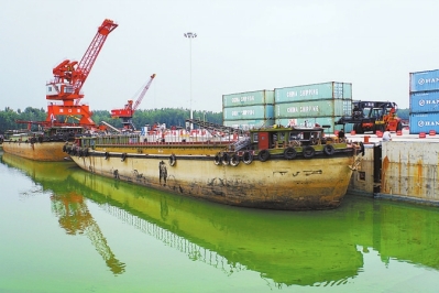 7月20日,周口中心港一派繁忙景象。該港口是我省規(guī)模最大、靠泊能力最強(qiáng)的內(nèi)河港口。隨著公、鐵、水、空“四位一體”立體綜合交通格局的逐步形成,周口中心港將成為豫貨出???、連接長三角經(jīng)濟(jì)圈的“橋頭堡”,也將成為中原地區(qū)深度融入“一帶一路”建設(shè)、通江達(dá)海的重要節(jié)點(diǎn)。河南日報(bào)記者 陳更生 王錚 攝