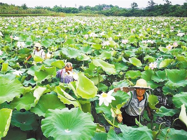 盛夏時(shí)節(jié),沈丘縣卞路口鄉(xiāng)南郭莊村400畝荷塘里的蓮蓬成熟,荷塘里一片繁忙景象。近年來(lái),該村因地制宜,種植蓮藕,讓村民增收不少。