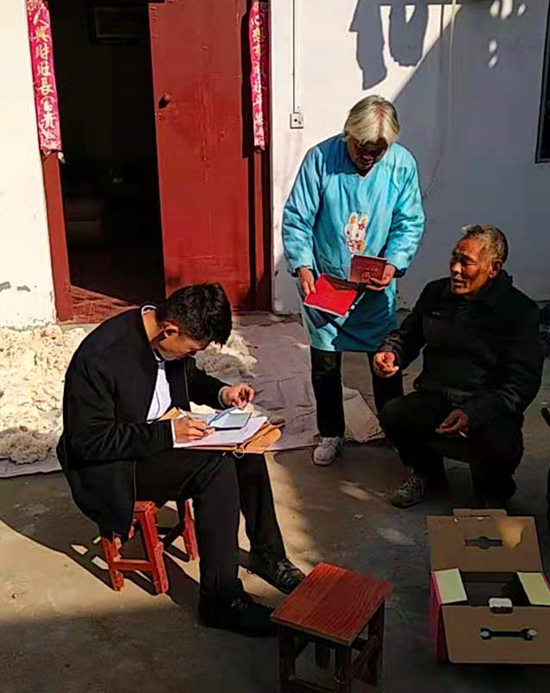 “多虧了咱的駐村干部,要不是他還不知道發(fā)生什么樣的情況呢。”發(fā)放賠償款那天,幾十戶農(nóng)戶一起來到村室,向王孟亞表示感謝。