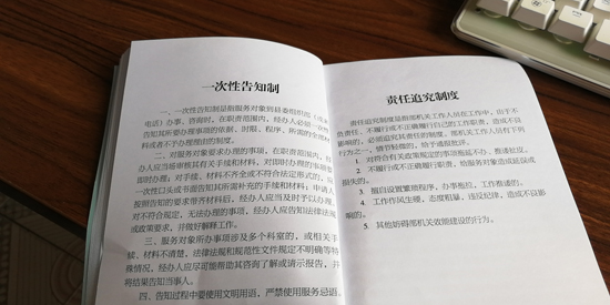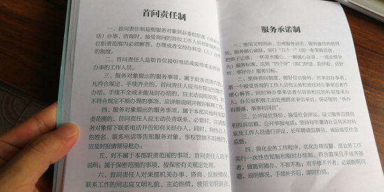 制度規(guī)定,服務(wù)對象到縣委組織部辦事、咨詢或來電時,首個接待的工作人員必須熱情、禮貌、耐心接待辦理或引領(lǐng)交給相關(guān)職責科室辦理。凡符合規(guī)定,手續(xù)齊全的,限時辦結(jié),手續(xù)不全未能及時辦結(jié)的,要主動向服務(wù)對象說明原因……縣委組織部常務(wù)副部長薛斌告訴記者:“通過扎牢制度的籠子,讓部機關(guān)工作人員做到一張笑臉迎客,一把椅子讓座,一杯茶水暖心,一顆誠心辦事,一流業(yè)績爭先的服務(wù)標準,切實達到門好進、臉好看、話好聽,事好辦的目的?!?/p>