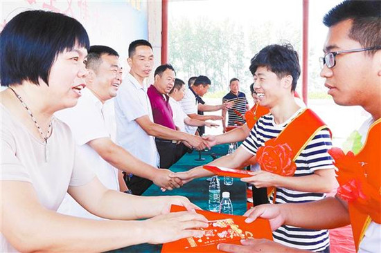 近日,市城鄉(xiāng)一體化示范區(qū)搬口辦事處曾樓行政村文化大院里,鑼鼓喧天,喜氣洋洋,熱鬧非凡。原來(lái)是村民在為該村大學(xué)新生舉辦歡送會(huì),同時(shí),該村黨支部還為這些大學(xué)新生發(fā)放了助學(xué)金。據(jù)了解,曾樓行政村有3000多人,2019年共有27人金榜題名,其中14人考入本科院校,13人考入專(zhuān)科院校。記者 張勁松 攝