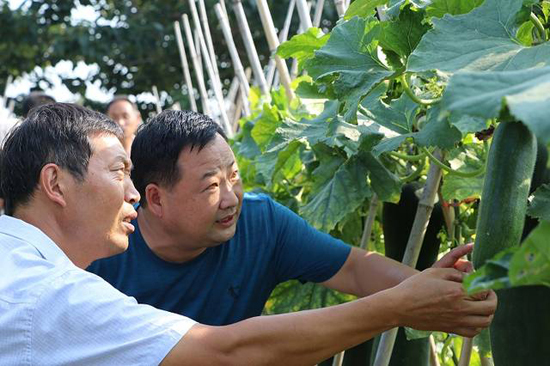 炎炎夏日,大棚下的侯俊昌汗水再次濕透,他撫摸著一串串紫紅色的葡萄說,這都是改變貧窮的“紫珍珠”啊,只要我們班子上下齊心協(xié)力,小小的葡萄也能幫我們“拔掉窮根?!辈粌H僅是葡萄產(chǎn)業(yè),村里的婦聯(lián)主任徐桂蘭也主動(dòng)帶頭創(chuàng)業(yè),承包了80畝的田地,種起了優(yōu)質(zhì)冬瓜,畝產(chǎn)上萬斤,通過駐村幫扶,提供產(chǎn)銷信息,遠(yuǎn)銷到省內(nèi)外多地。秋季種小麥、夏季種冬瓜的模式,畝產(chǎn)收益均在4000元以上。她平時(shí)鼓勵(lì)村里貧困戶到冬瓜地打工,每年帶動(dòng)近20戶貧困戶,每戶增加收益近5000元。”侯俊昌告訴我們,“產(chǎn)業(yè)扶貧,造血扶貧在位口村已經(jīng)深深扎根,同時(shí)也吸引了很多在外務(wù)工的有識(shí)青年返鄉(xiāng)創(chuàng)業(yè),有的做起了尾毛生意、有的做起了毛刷生意。現(xiàn)在全村興起人人講創(chuàng)業(yè),戶戶拼經(jīng)濟(jì)的良好氛圍?!?/p>