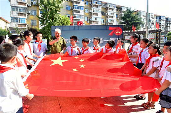 滿頭白發(fā)、一身黃軍裝的抗美援朝老戰(zhàn)士王文華,站在國旗臺下,整理旗繩,引人注目。他今年85歲,是此次升旗儀式的升旗手。10年前,王文華在文苑社區(qū)捐建市區(qū)首座居民小區(qū)國旗臺。在本報(bào)倡導(dǎo)之下,全城掀起“紅色旋風(fēng)”,相繼建立20多座小區(qū)國旗臺。10年來,王文華心中始終澎湃著愛國情懷,每到國慶節(jié)等重大節(jié)日,都會(huì)帶領(lǐng)社區(qū)部分居民一同升國旗,使國旗臺成為了社區(qū)的愛國主義教育基地,他還因此上了央視《新聞聯(lián)播》。